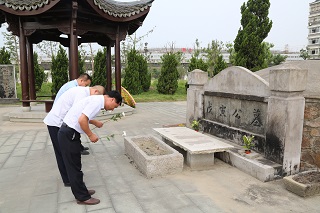隨后,四個花圈被緩緩抬到公墓前,全體人員一起向遇難同胞默哀。原喬司文化站站長丁有福老師,從上世紀(jì)80年代擔(dān)任文化站站長以來,一直在收集大屠殺的資料和尋訪眾多劫后余生的幸存者和死難者親屬。他向大家講述了日寇的法西斯侵略暴行,回首這段慘痛的歷史。最后,參加人員按秩序走到墓前,向遇難同胞鞠躬鮮花。整個紀(jì)念活動莊嚴(yán)肅穆,余杭公交黨員、團(tuán)員共同緬懷同胞、牢記歷史、勿忘國恥。
