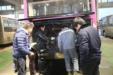 在公司副總經(jīng)理陳連忠?guī)ьI(lǐng)下,40余名檢查人員共分兩組,在臨平停?;睾蛡}前停?;?,連夜對所有回場的營運車輛安全系統(tǒng)進行全面排查整改。此次排查主要以車輛各類油電管線路、液化天然氣(LNG)儲(供)氣系統(tǒng)、發(fā)動機艙、高壓控制艙,以及客門應(yīng)急開關(guān)、安全錘、滅火器等車載安全設(shè)施的技術(shù)性能為排查重點。檢查中,陳總指出:要有重點、有針對性地開展排查工作,加強對老舊車輛、油電混動車輛電管線路老化、不規(guī)范布線等隱患的排查,完善各類車載安全設(shè)施,對排查中發(fā)現(xiàn)的各類隱患及時消除,嚴(yán)禁隱患車輛上路運行;同時,要落實好安檢“三負(fù)責(zé)”制度,做好排查和整改內(nèi)容的臺賬記錄,確保整個安全排查執(zhí)行率達到100%。