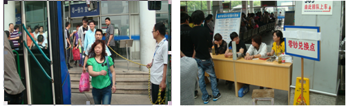?? 乘客有序上車???????????????????????????????????? 忙碌的服務(wù)臺(tái)